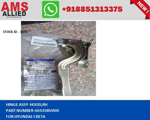 HINGE ASSY-HOOD,RH for HYUNDAI CRETA HINGE ASSY HOOD,RH 66920BV000 STOCKID 3070 AMS ALLIED SPARE PARTS EXPORTER FROM INDIA GENUINE SPARE PARTS FOR TATA MAHINDRA FORD SUZUKI HYUNDAI