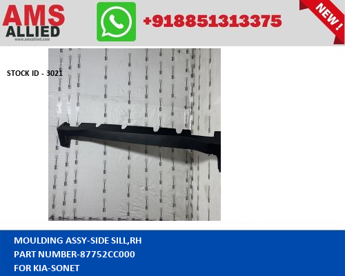 MOULDING ASSY-SIDE SILL,RH for KIA SONET MOULDING ASSY SIDE SILL,RH 87752CC000 STOCKID 3021 AMS ALLIED SPARE PARTS EXPORTER FROM INDIA GENUINE SPARE PARTS FOR TATA MAHINDRA FORD SUZUKI HYUNDAI